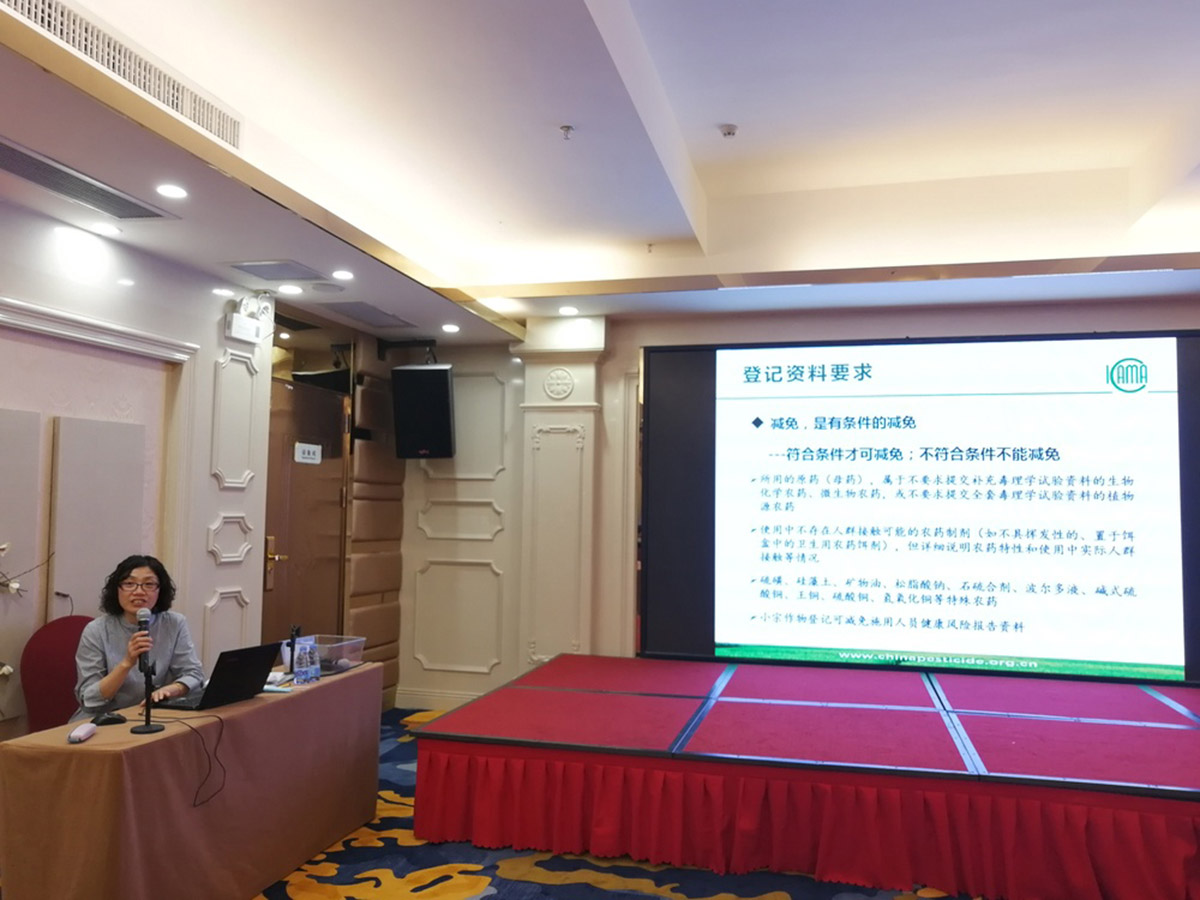 农业农村部农药检定所质量审评处副高级工程师姜宜飞为学员讲授《农药登记产品化学资料评审规范》。