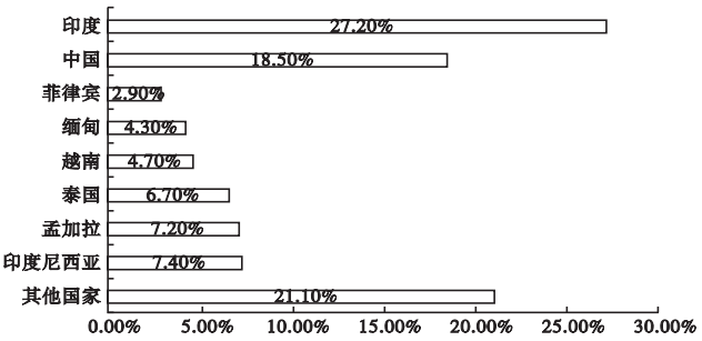 印度占比27.2%,排名第1,中国位居第2名占18.5%,印度尼西亚为第3名占7.4%,孟加拉为第4名占7.2%。值得一提的是,菲律宾作为东南亚一个多民族的群岛国家,农业是其经济的重要组成,2018年占全球水稻种植的2.9%,可见其农业资源比较丰厚。鉴于当前的水稻价格偏低,全球水稻种植总面积将会下滑。