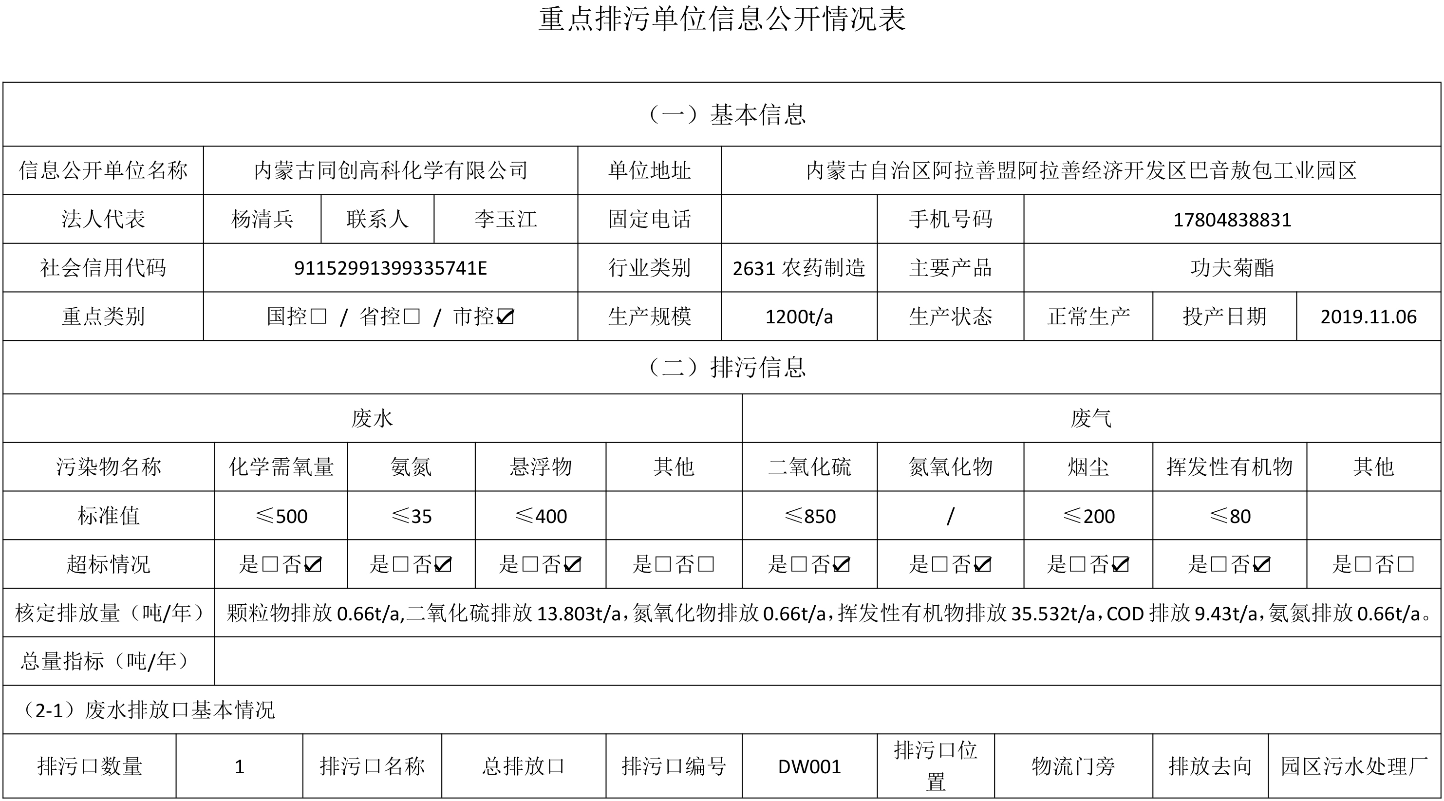 重点排污单位信息公开情况表