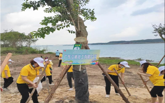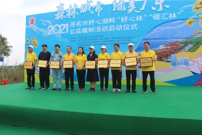 4月24日上午,“森林城市 绿美广东”2021茂名市好心湖畔“好心林”“碳汇林”公益植树活动在露天矿生态公园举行。市委书记、市人大常委会主任袁古洁,市委副书记、市长庄悦群,市政协主席刘芳,市委副书记、滨海新区党工委书记、水东湾新城党工委书记陈绩等市领导出席了启动仪式,并为"好心林"“碳汇林”植树认种单位(个人)代表颁发了《认种证书》和认种牌匾。广东立威化工有限公司原药总经理叶炎婵带领着50名员工参加了此次公益慈善活动。