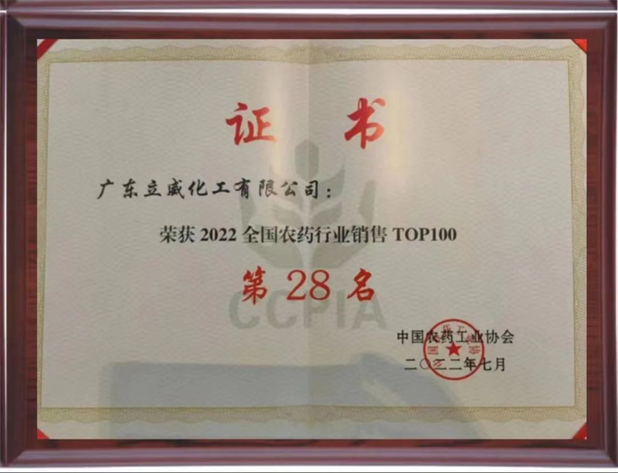 7月7日,第九届农药行业经济运行分析会暨2022全国农药行业销售百强榜发布会在浙江绍兴隆重举行。广东立威化工有限公司以26.26亿元的销售额位居全国排名第28名。