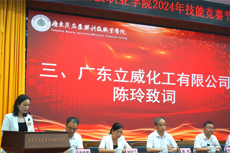 5月28日上午,由广东茂名农林科技职业学院(以下称农林科技学院)主办,广东立威化工有限公司协办的2024年技能竞赛节暨劳动教育周开幕式在农林科技学院隆重举行。农林科技学院党委副书记、院长林里泉作致词,开幕式由学院副院长陈列主持,广东立威化工有限公司代表参加开幕式。